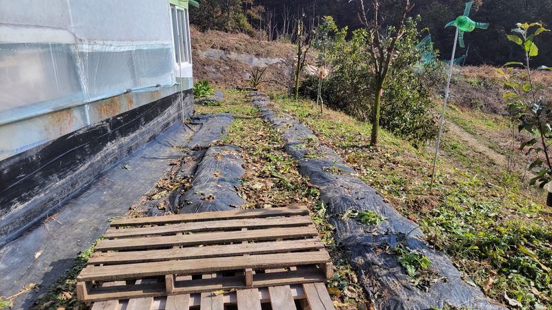 날이 많이 추워 졌습니다. 그동안 너른 밭에 엄나무 캐고 더 너른 밭으로 옮겨 심고, 마지막으로 종근심기를 하다가 날이 추워져 멈췄습니다. 어제 오늘은 비닐하우스 안에 파렛트를 분해해 조그만 틀밭을 만듭니다. 과수나무 가지치기한 잔재물들 넣고, 그 위에 호박덩굴...