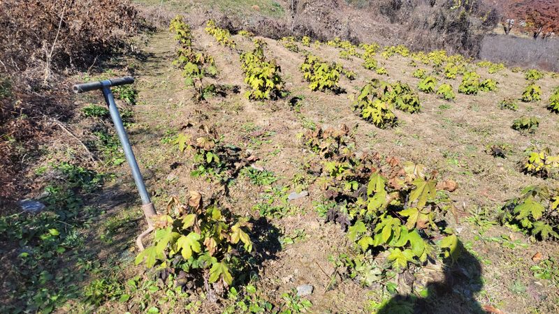 엄나무에 이어 두릅 밭도 풀작업 중입니다. 뽑는 건지? 깍는 건지? 모를 애매한 작업ᆢ 농막 주변엔 제초제 쳤습니다. 비암 출몰에 놀라 궁여지책으로ᆢ^^