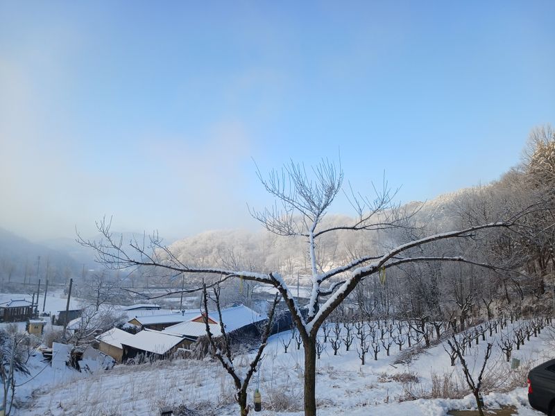 이곳 보은, 어제 내린 눈이 제법 멋진 풍경을 만들었습니다. 그래도 오후엔 기온이 올라 엄나무 캐는 작업은 무리가 없었지만ᆢ? 그보다 급한작업이 있었습니다. 미리 준비해놓은 블루베리와 아로니아 삽수가 마르면 어쩌지? 더군다나 하우스에 방치(?) 했었다는ᆢㅎ 엄나무...