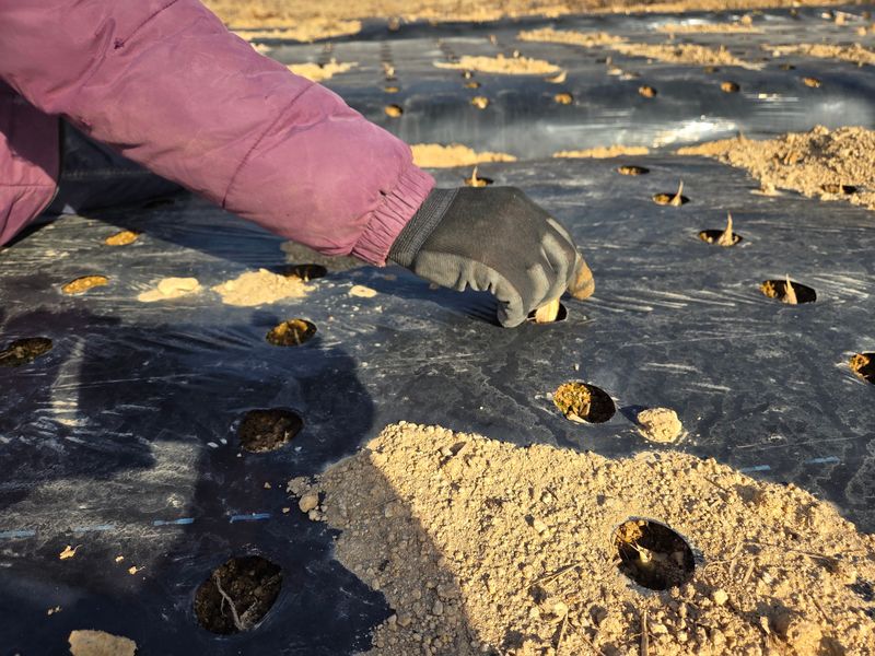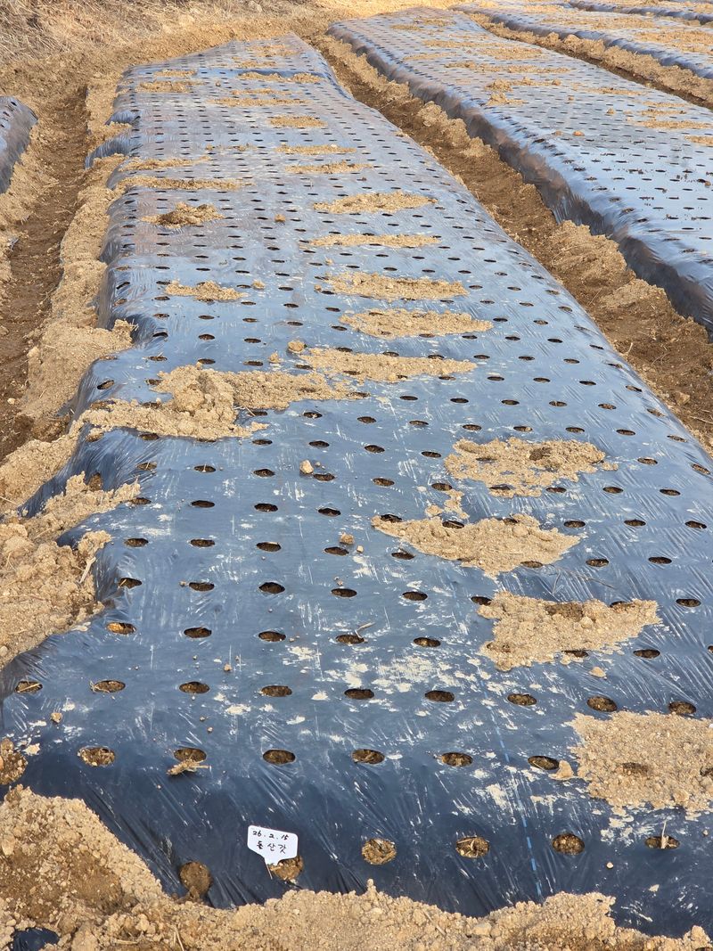마늘심는 작업에 인력불러 심었는데 비온뒤 마늘이 위로 솟구친게 많아 다시심어야함 심기 재작업