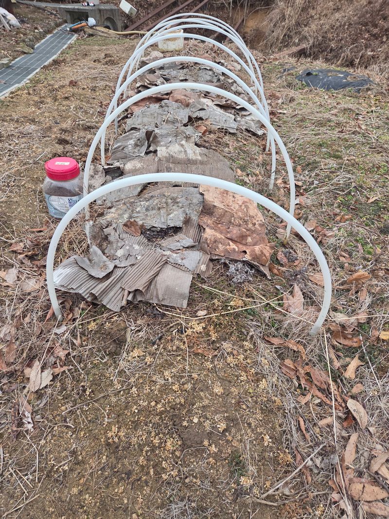 2차건조준비 미니 비닐하우스 작년가을에 틀만 세우고 마늘 수확기인 지금에서야 비닐을 씌웠습니다 아직 다 완성된건 아니지만 그나마 작년보다는 마음이 편합니다