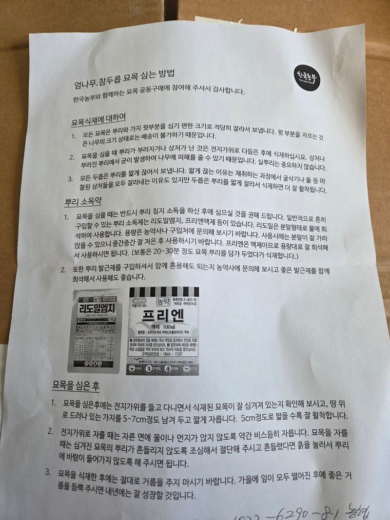 민엄나무 묘목도착 새로운 농지에 채울 것입니다