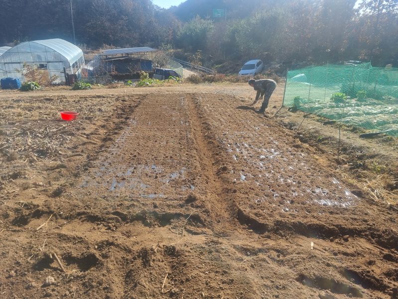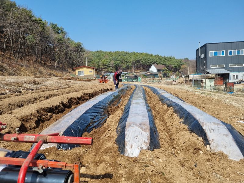 마늘심을곳 로터리작업 비닐씌우기 콩베기
