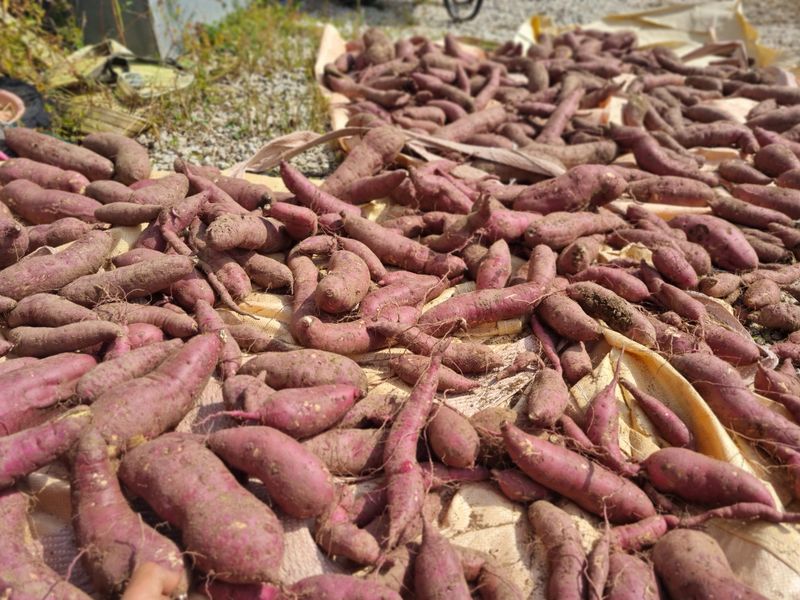 고구마수확 했습니당 올해는 고구미가 엄청 크네요~20평정도에서 250키로가까이나왔네용