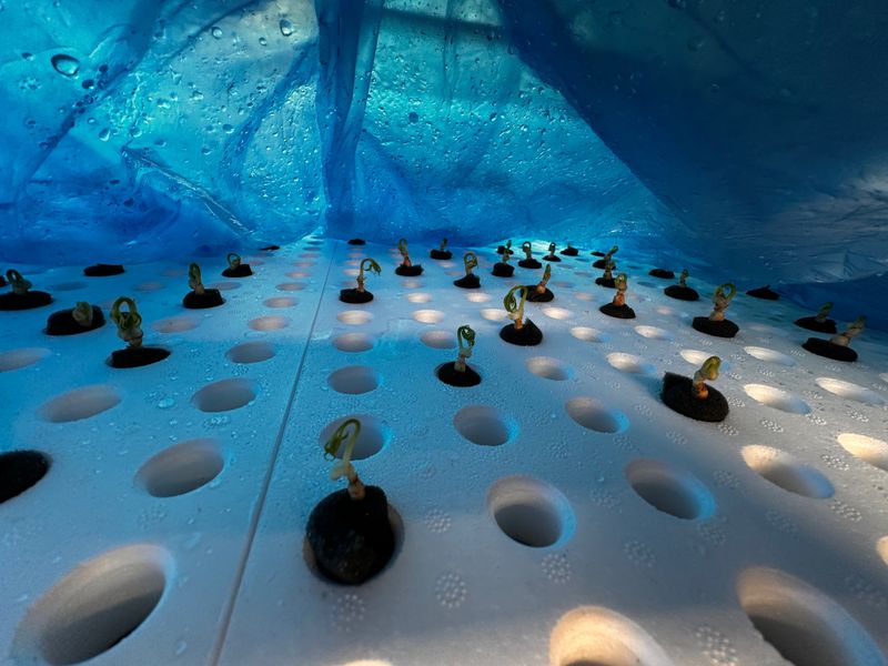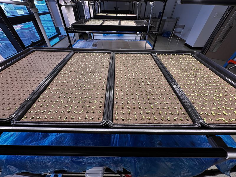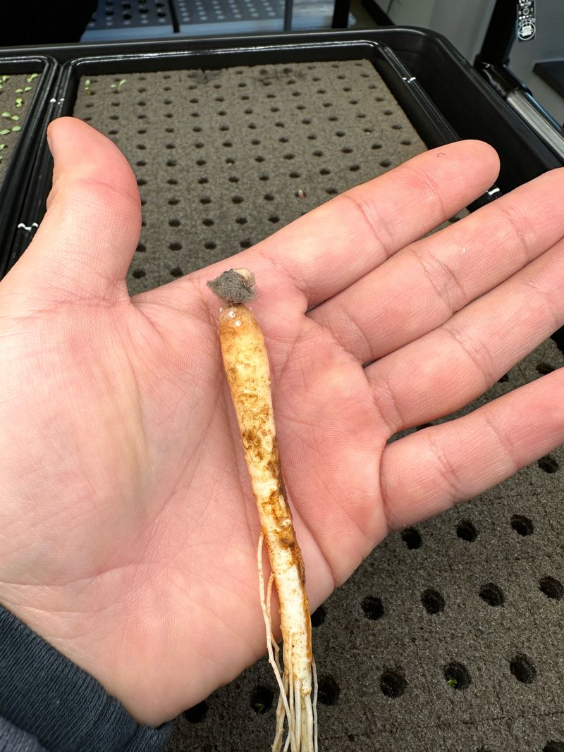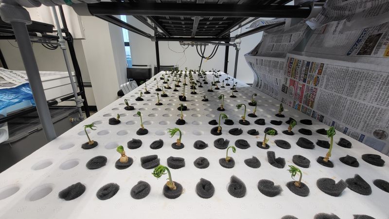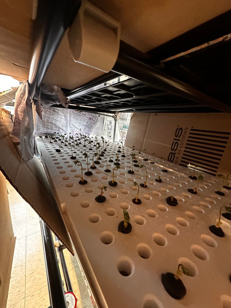 떨어진 양액 추가로 투입해 농도높임 새싹삼 위치조정 및 미성숙 묘삼 특별관리!! 새싹삼 뿌리발근 잘되고있음