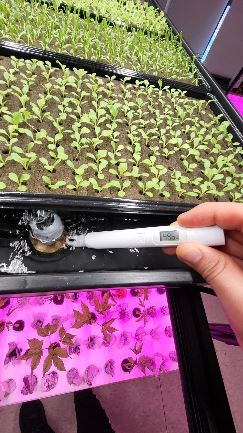 2차 정식으로 상추간 재식거리 만들어줌 담액수경으로 양액농도를 높였음 0.7~1.5