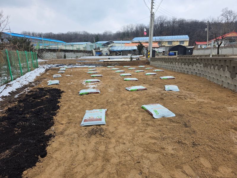 밭 미리 준비 하기 위해 거름펴기 석회뿌려놓기
