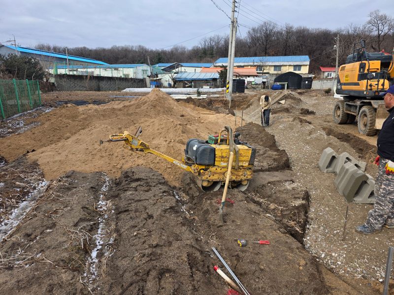 감자 심을 텃밭 흙받아 평탄 작업후 퇴비 펴기