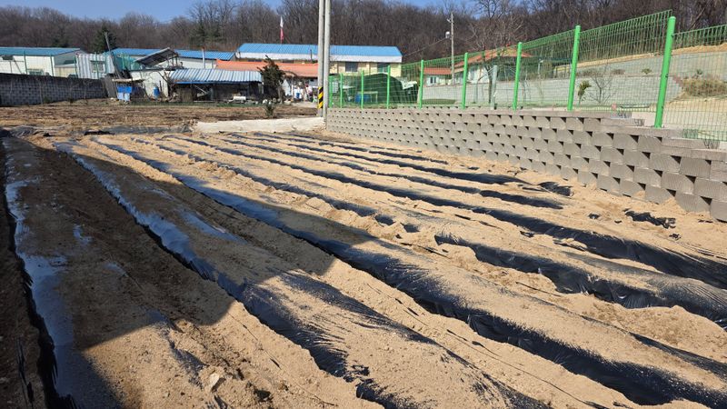 감자 심기 위해 밭 정리후 비닐 씌워 놓았다 여기는 아직 추워 주말쯤 심을 예정이다