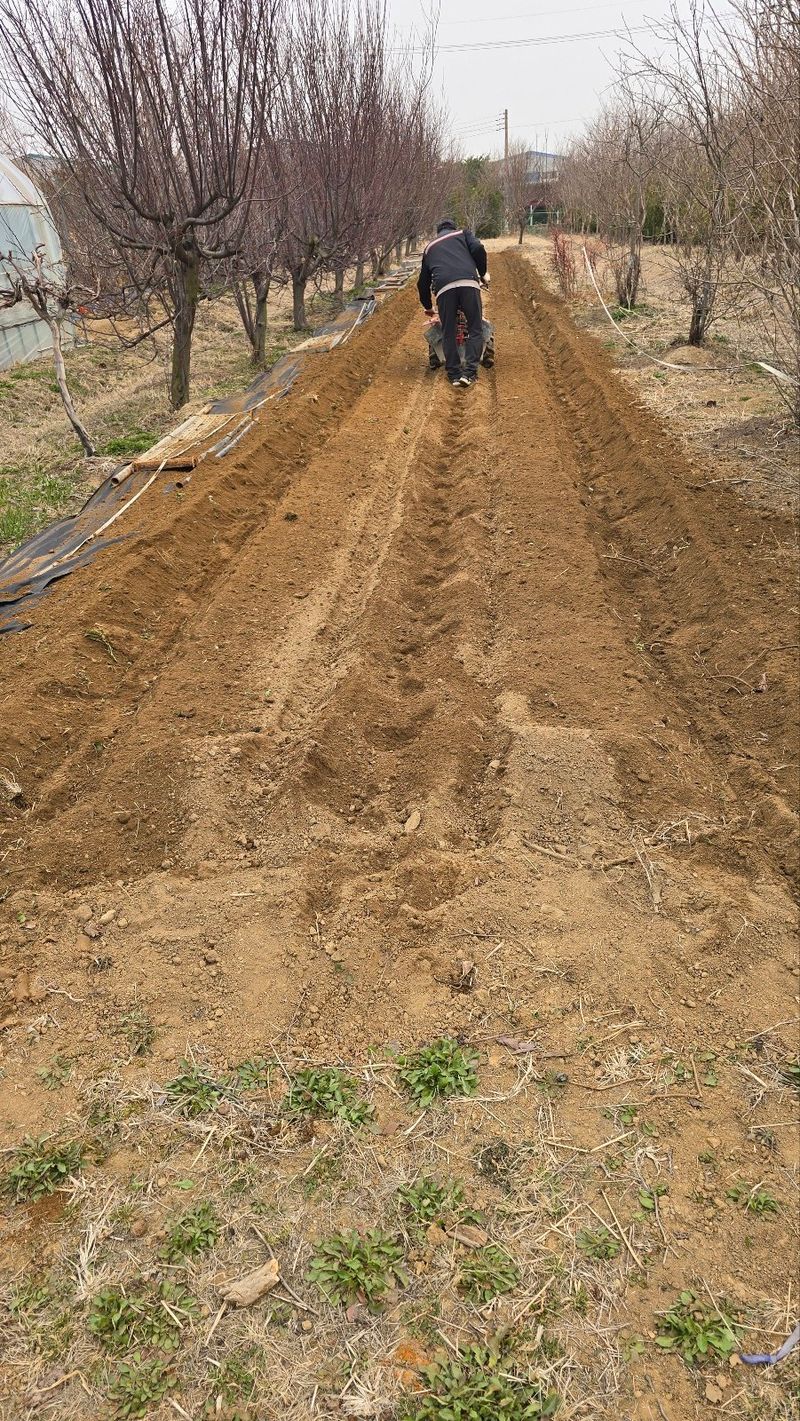 1,밭두렁 갈퀴질 2,퇴비 뿌리기와 복합비료 살포 3,토양살충제 살포