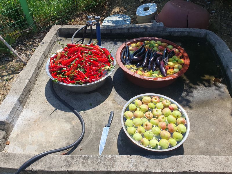 농산물 수확 고추,가지,토마토,애호박 사과(애기사과)