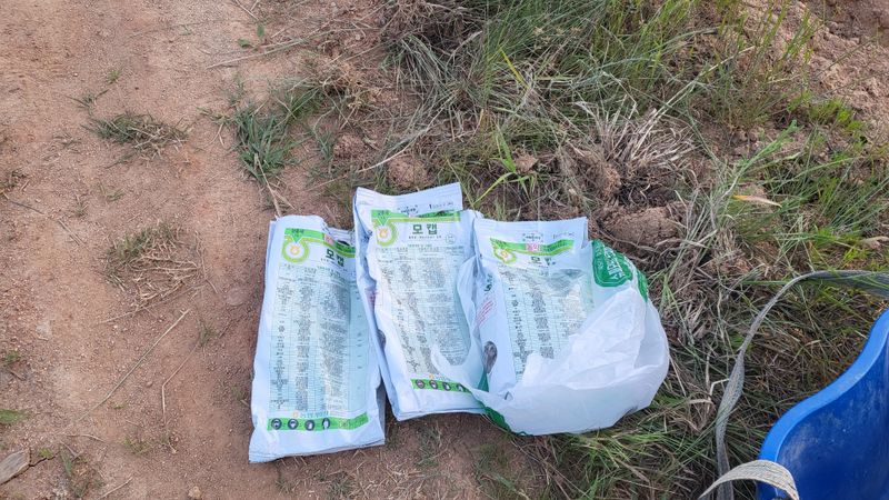 복합비료 반포, 칼슘유황비료 1/4포 뿌림