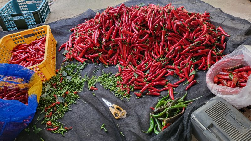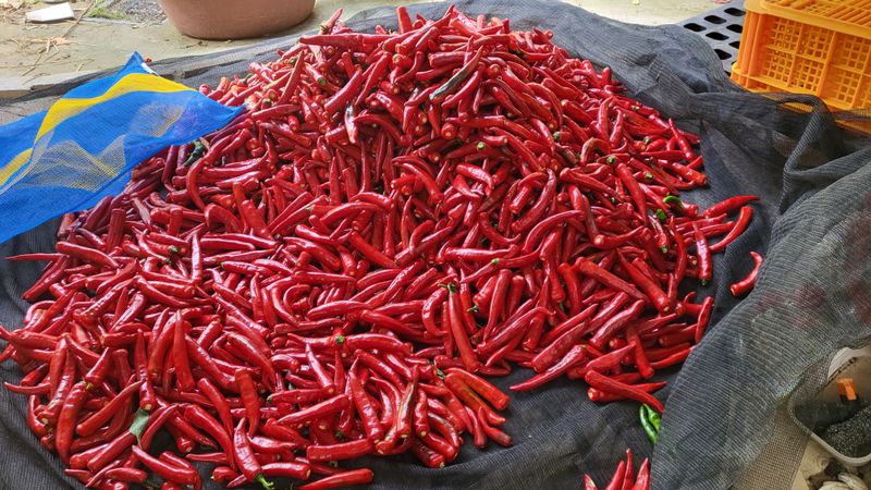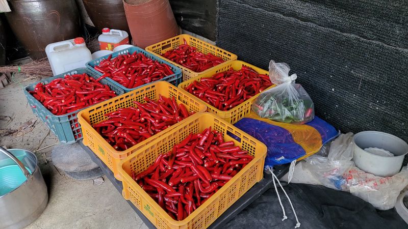 7/27,29 토일에 120k 고추 수확 꼬투리 제거 하며, 선별 하고 ㅊ토요일에 딴 고추 씻어 먼저 건조기행~~