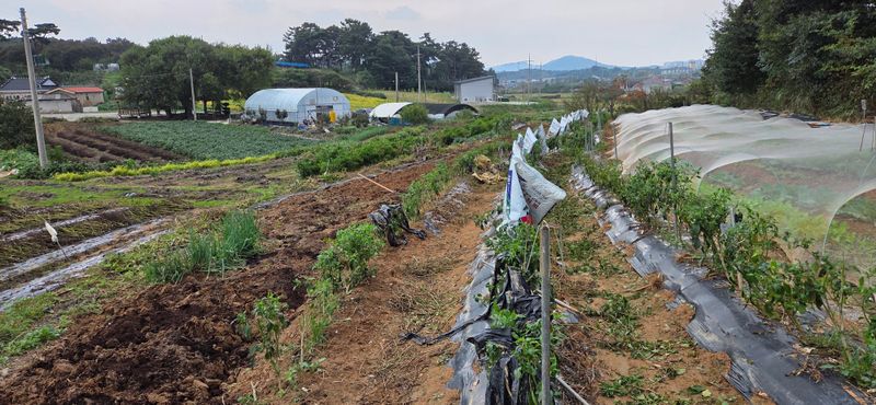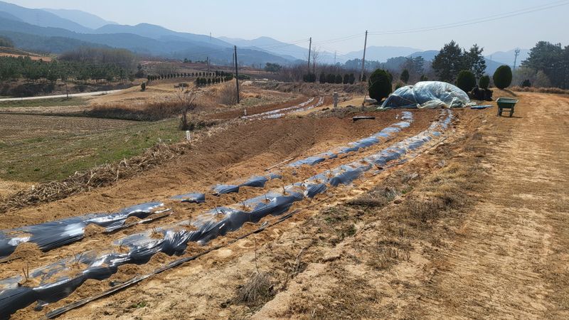 친정 아버지 도움 하며 농사 조금씩 하다가 4년전 땅 물려 받아 직접 지어보니 풀과의 전쟁~~ 제초매트, 잡초매트 써서 농사 지으니 그나마 풀은 잡는데 남는게 없는거 같다.