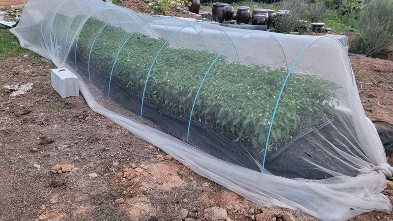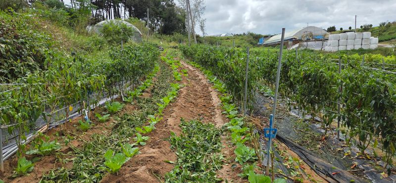 고추밭에 심은 배추 고춧대 제거 작업 하고, 한랭사 씌우기 작업까지 했네요.