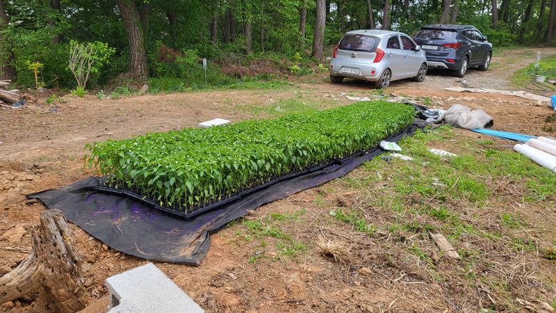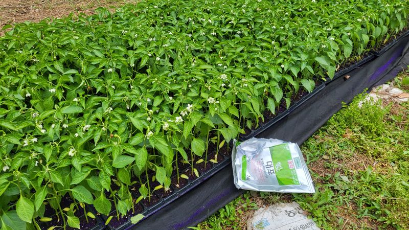 5월5일 고추 1800주 심고, 10일에는 제초매트 고랑에 깔았네요.