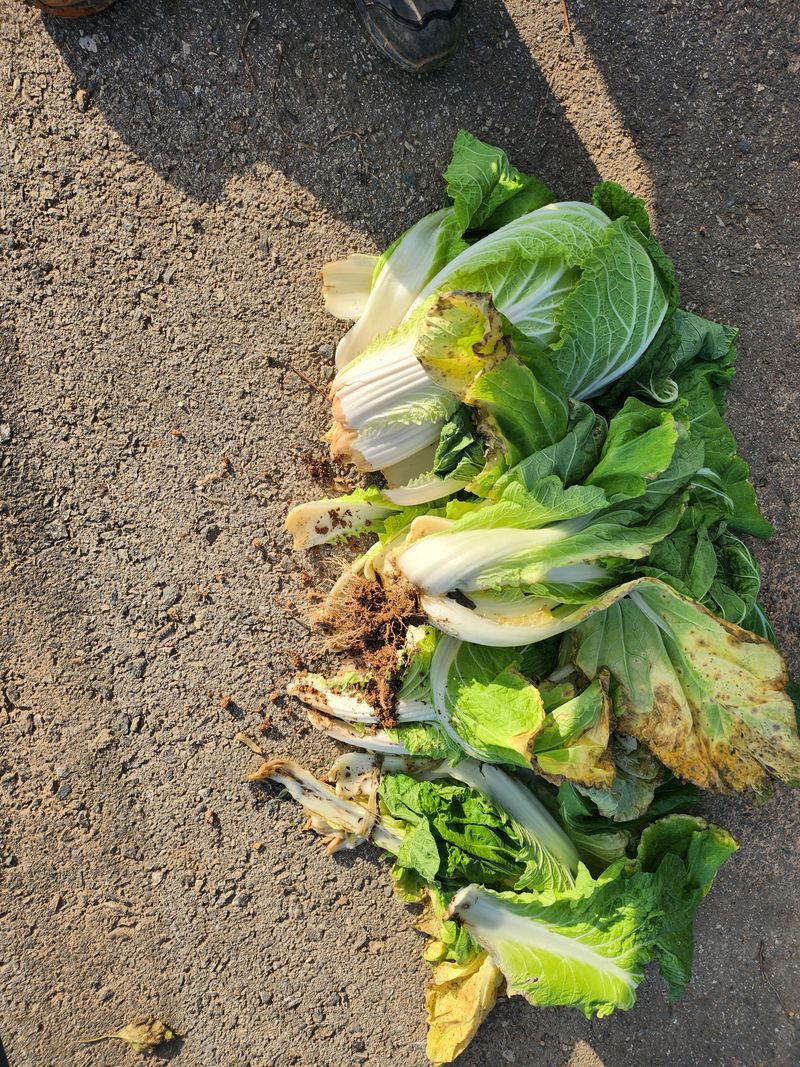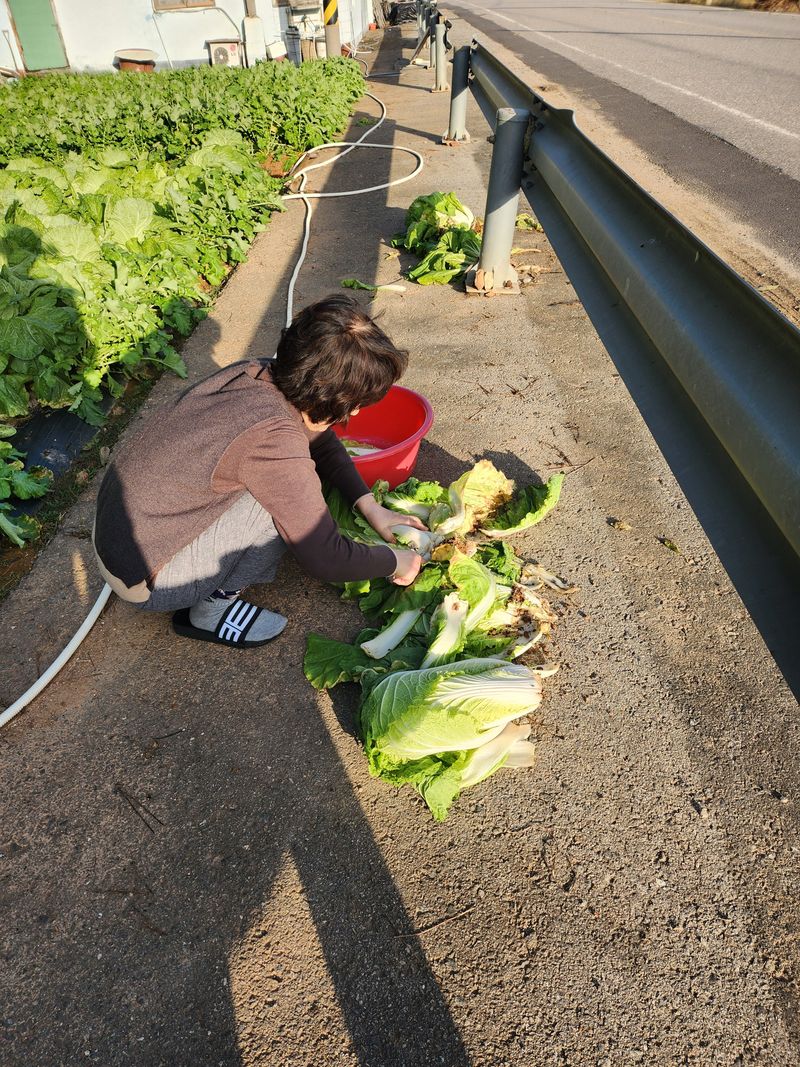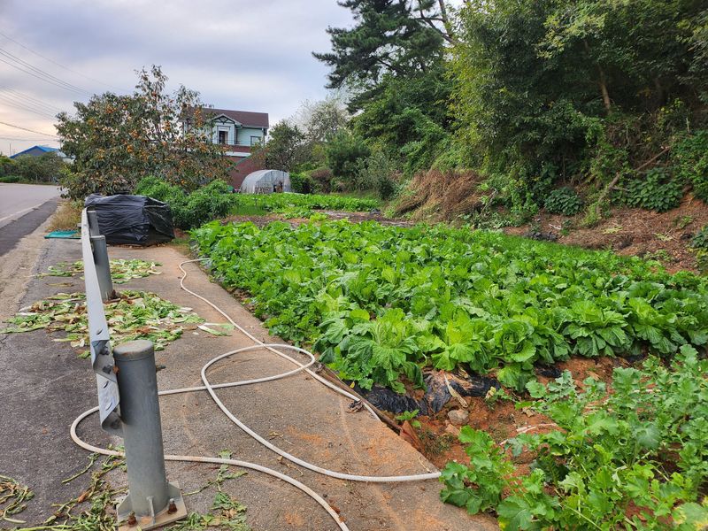 올해는 산사태로 배추밭에 벼농사 지었읍니다 물바다로 물음병 250포기에서 50포기도 수확이 않되었어요