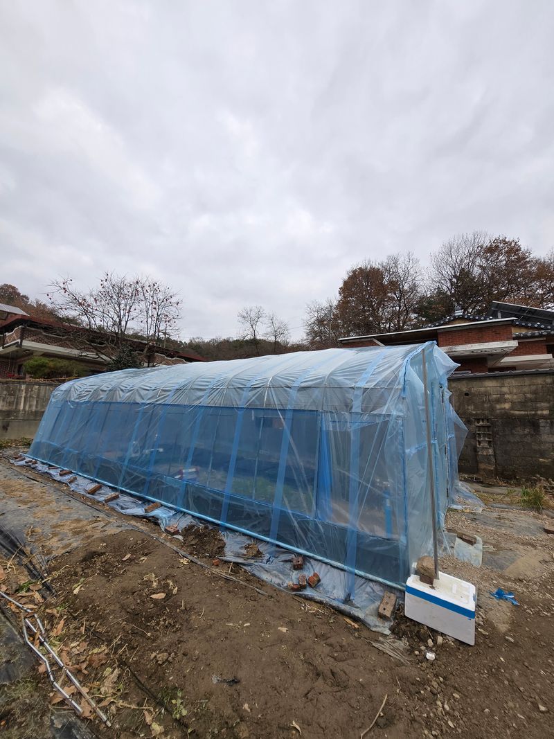미니 연구 하우스 셀프시공 90% 완료 중고 파이프로 60만원 15평하우스를 만들어 봤어요~ 비싸고 좋은 하우스만큼은 안되겠지만 연구 하우스로 사용하기엔 최고♡ 모두 감기 조심하셔요