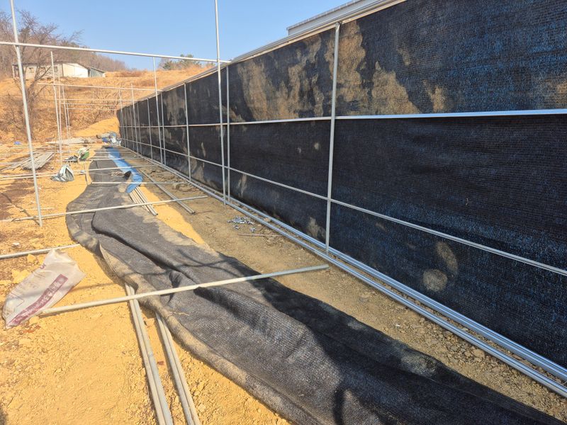 꿈에그리던 수평하우스 만덜어가는 중이랍니다.과일이 많이 달리면 2중하우스가 목표이기 때문에 설치할때 튼튼하게 만덜어야 됩니다.