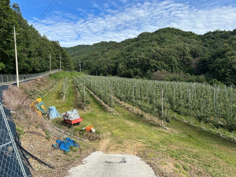 시나노골드낙과방지제살포! 안티폴살포,칼슘같이살포해야함 아리수막바지수확! 아리수깔낼때는잎제거는확실하게해야함