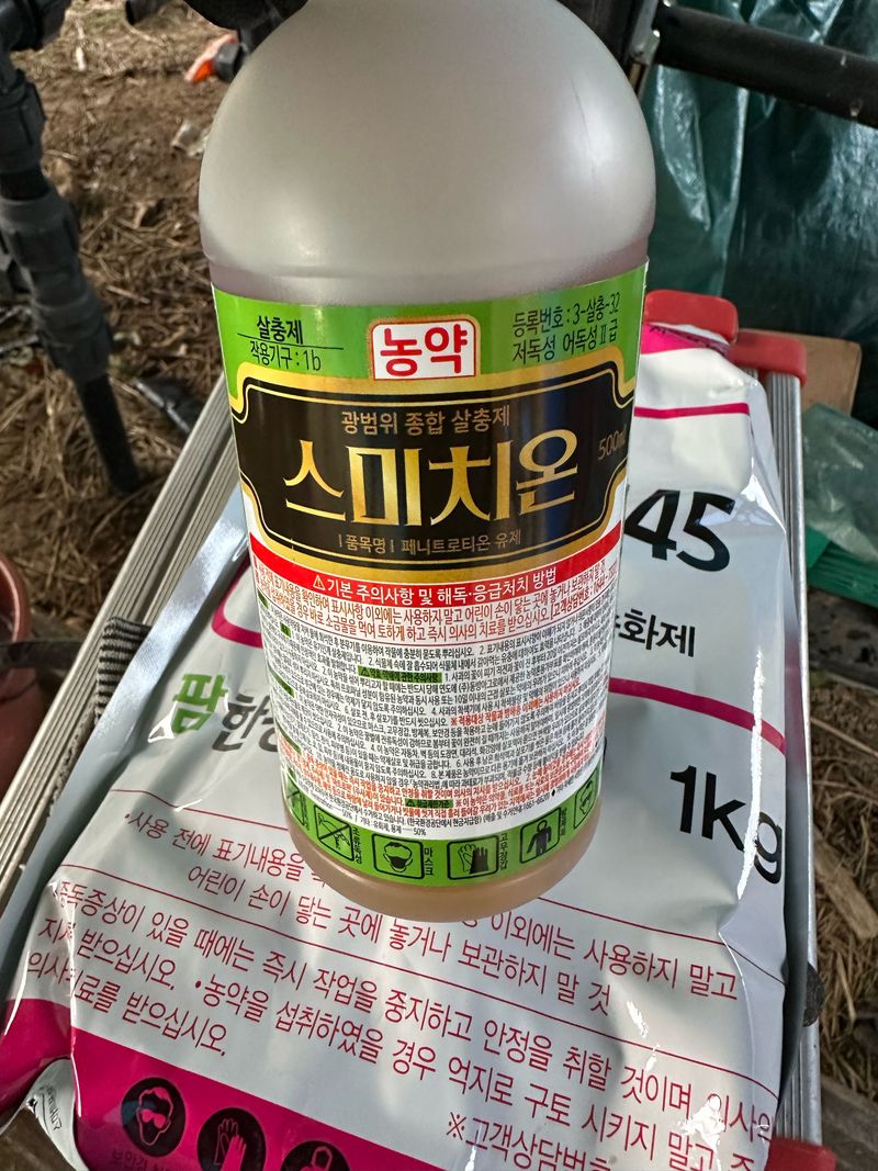 마지막방제작업 요소500L에2kg씩 살충제싼것과살균제싼거처방