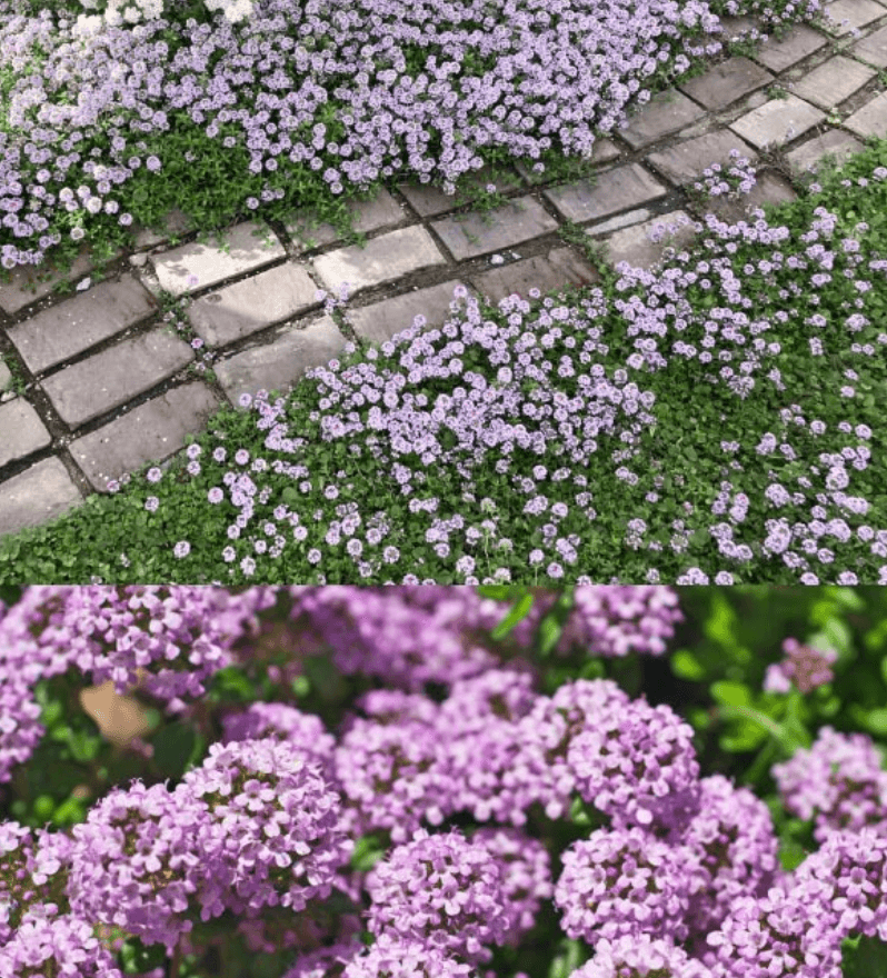 야생화 식재 백리향 낮고 넓게 잘 퍼지는 초화류라고 해서 특별 주문해서 40포트를 반씩 잘라 집 뒤 둑에 식재 하였어요