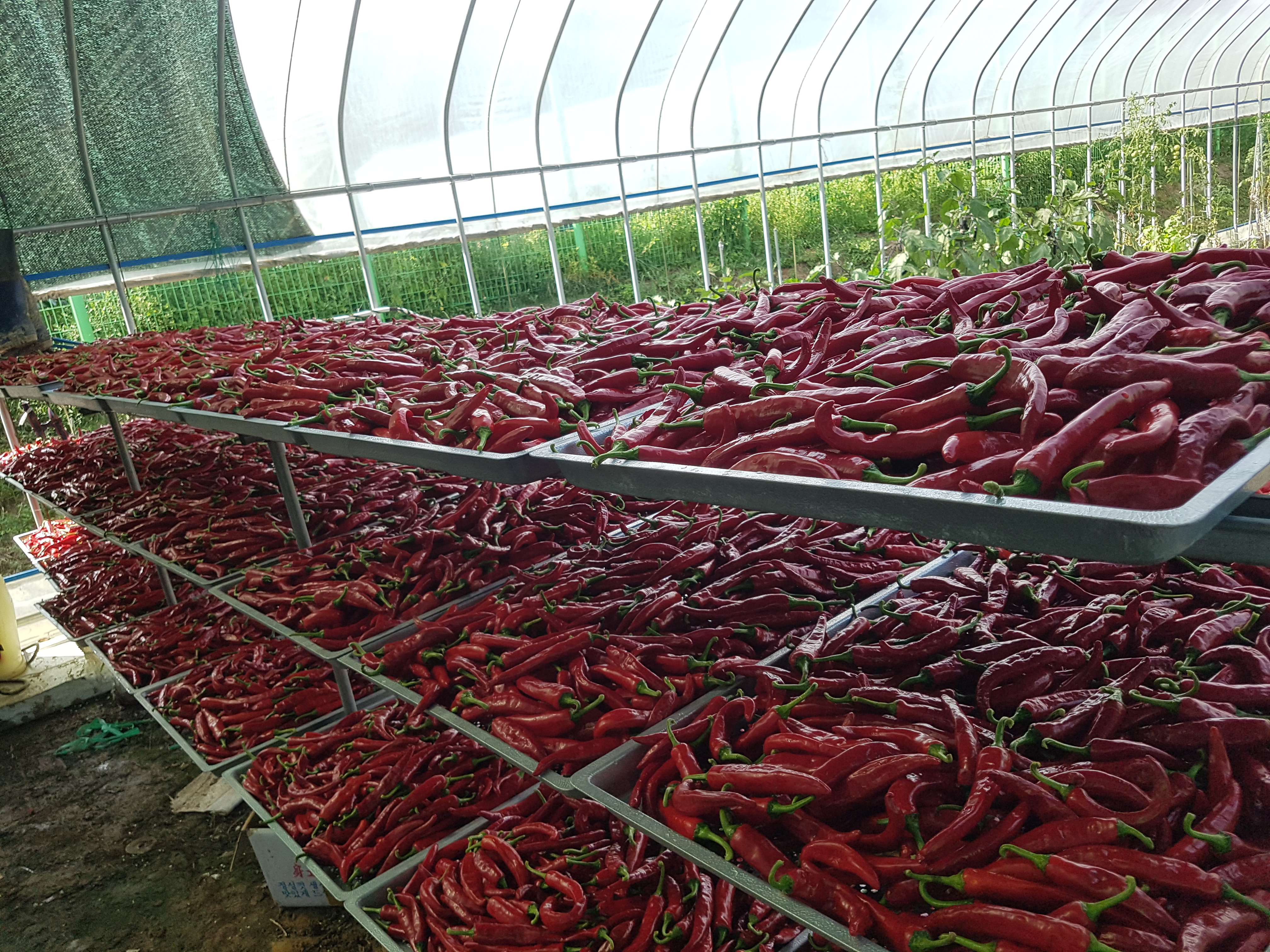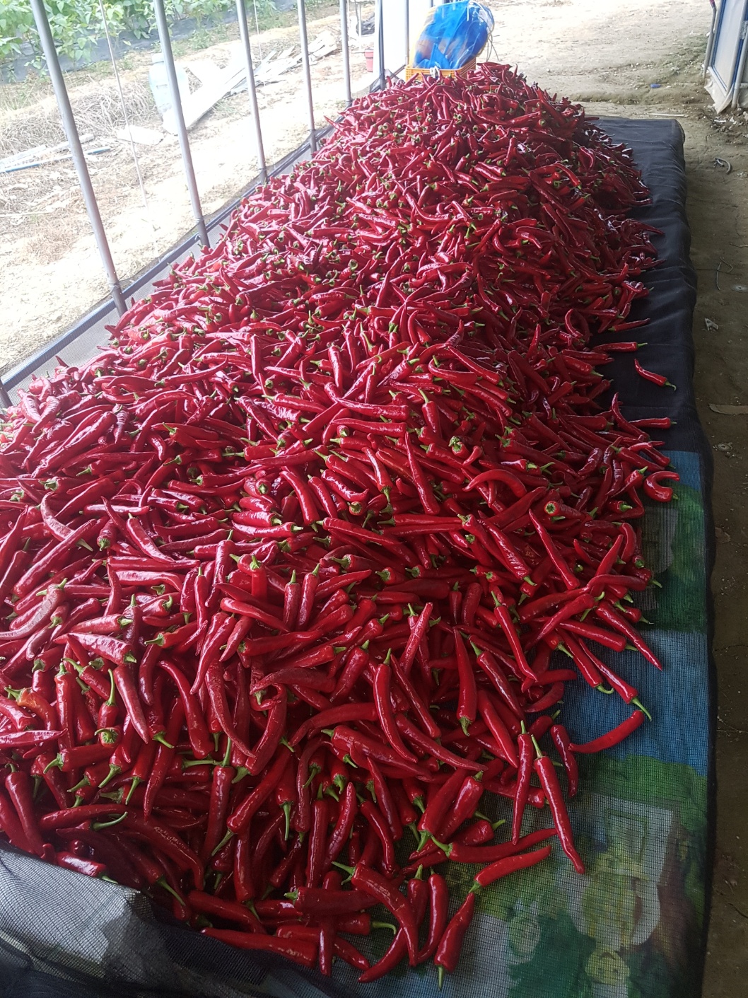 고추수확 3일 숙성 후 세척하고 건조기 드러가기 전 그늘에서 물기 제거중