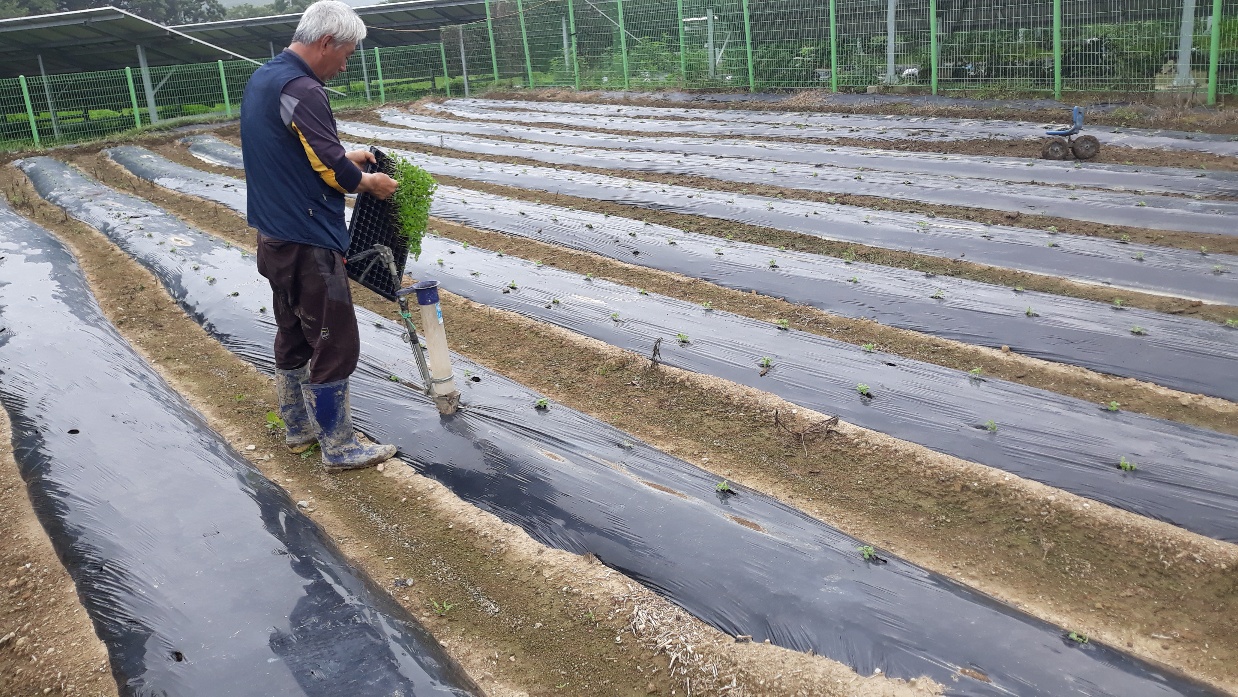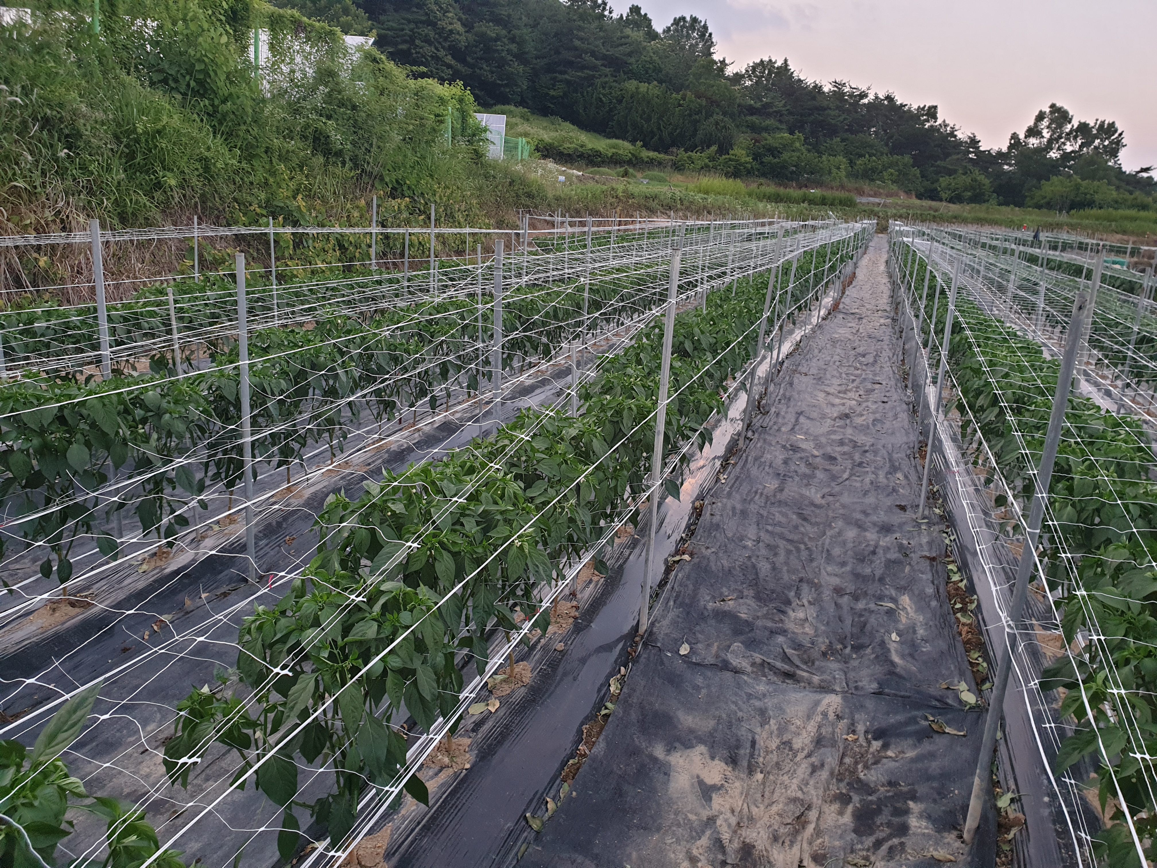 5월4일 정식한 고추 제초메트 깔기 1차 고추망 설치