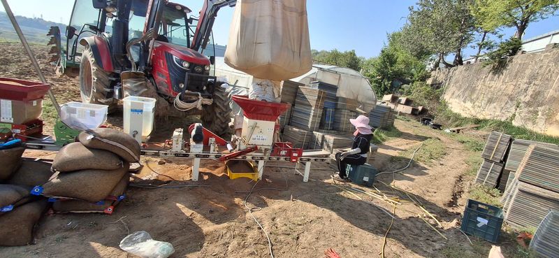 못자리 준비 파종기 및 적재. 준비