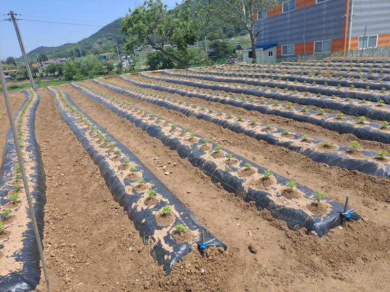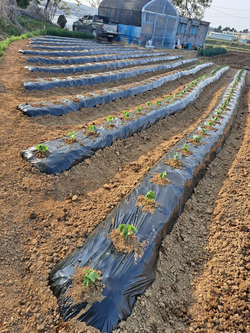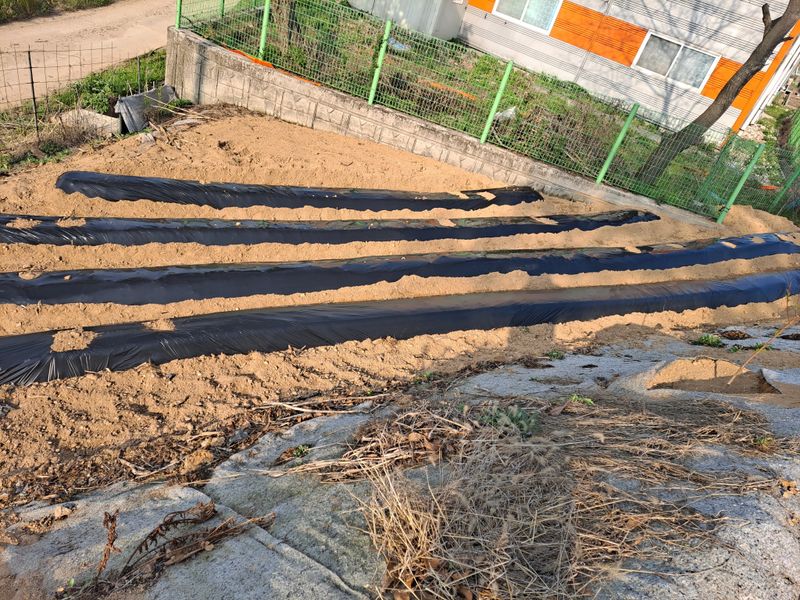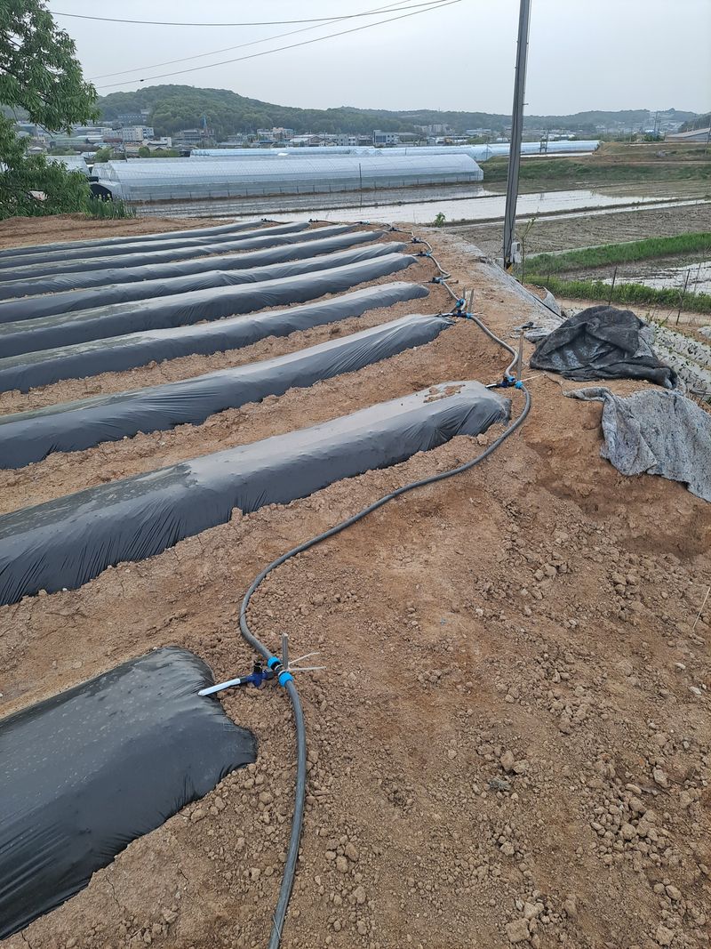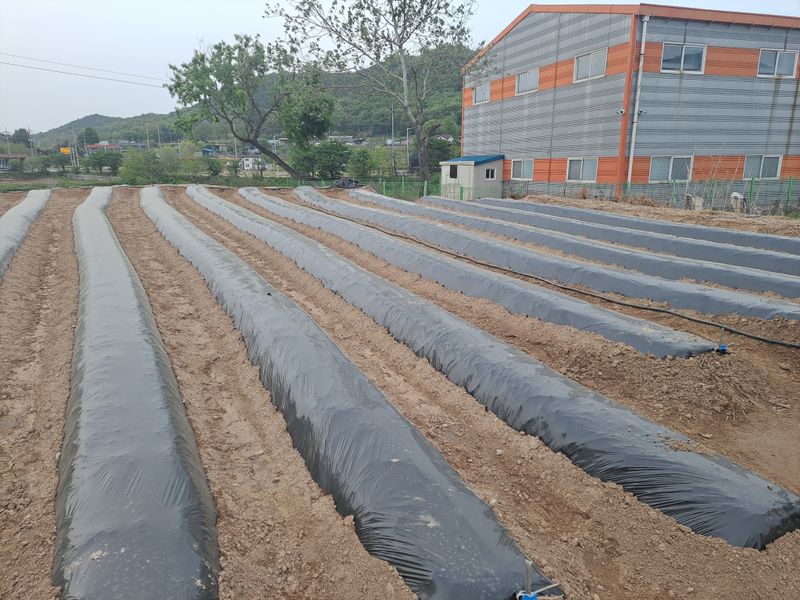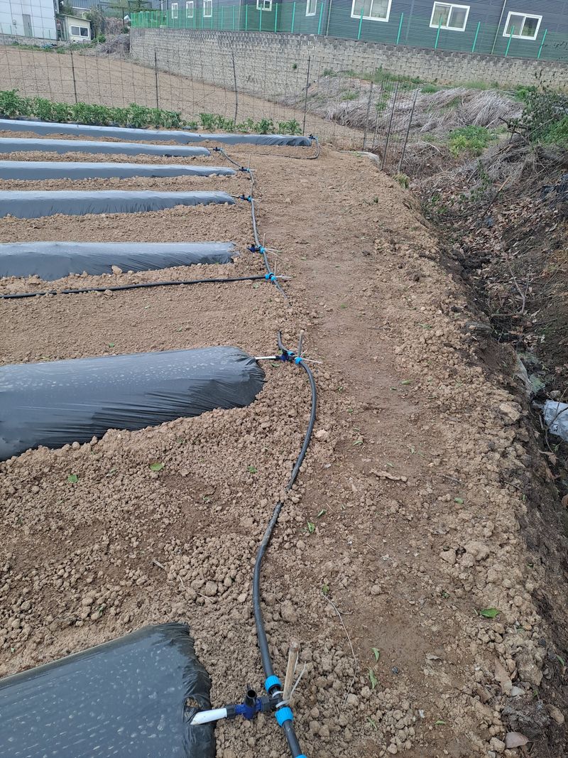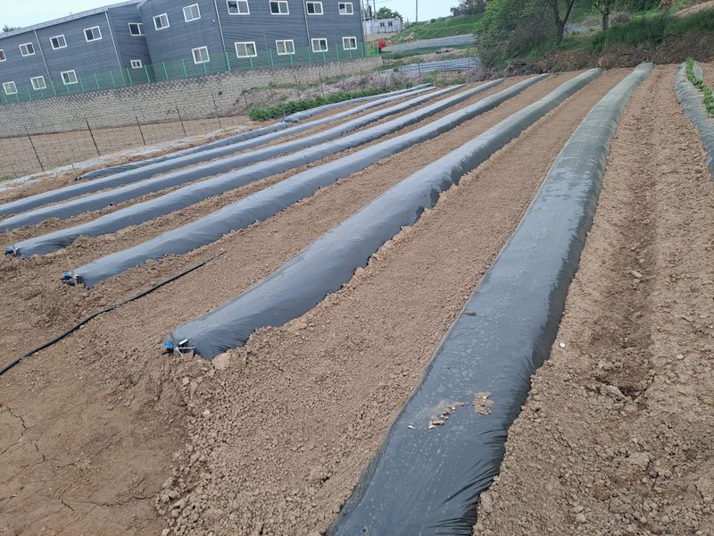 고추두둑 만들고 관주호스 넣고 비닐 멀칭 함 6두둑 / 고추 250개 심을 예정
