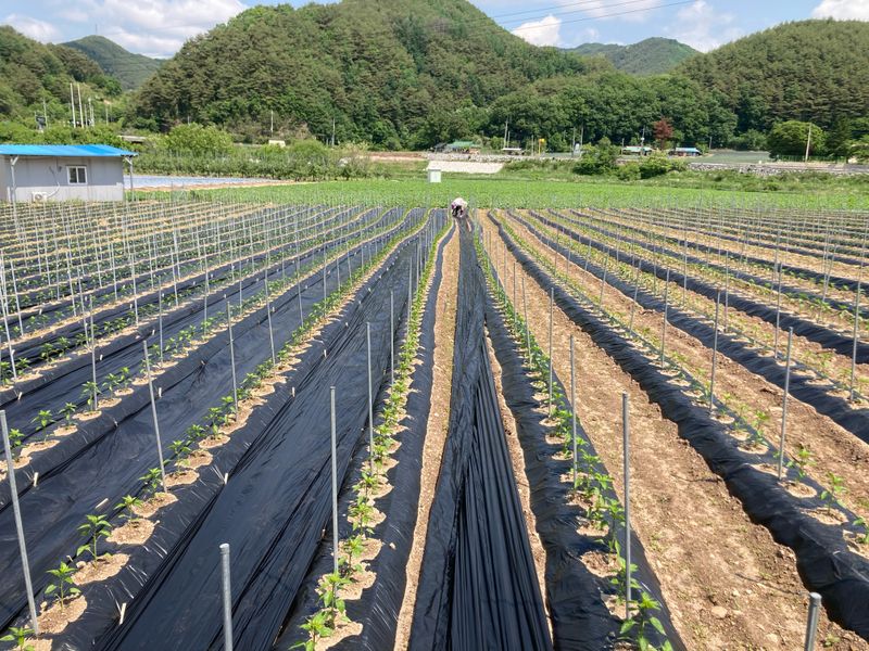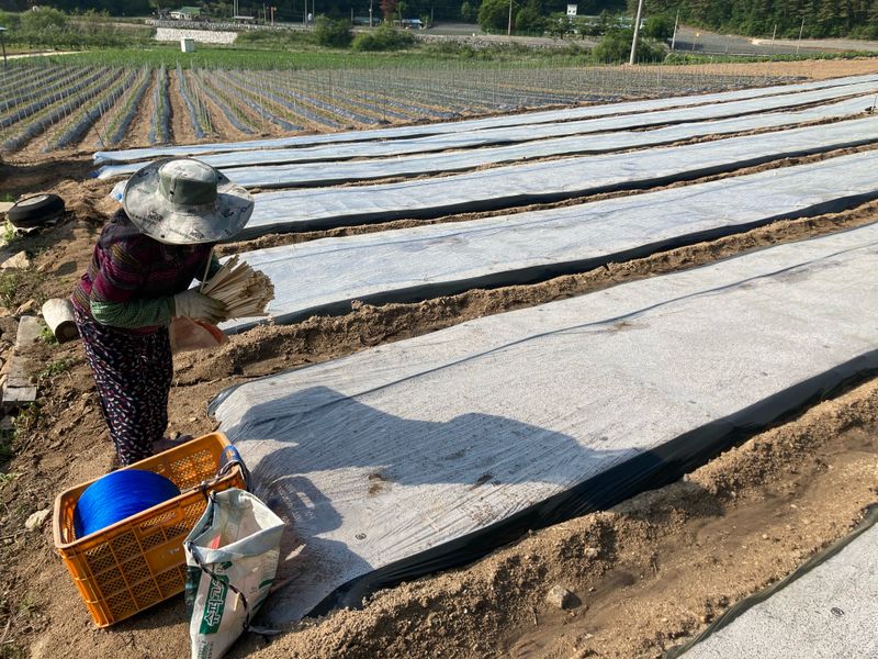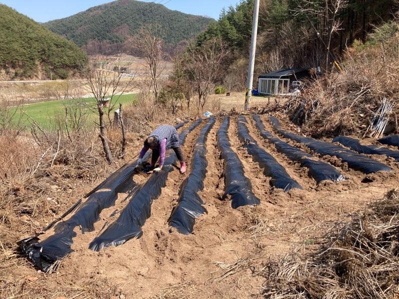 고추 식재 예정지 멀칭작업