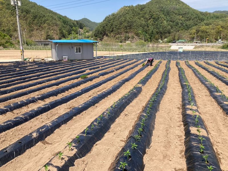 고추 본밭 정식(1/3 작업완료) - 재식거리(25cm)
