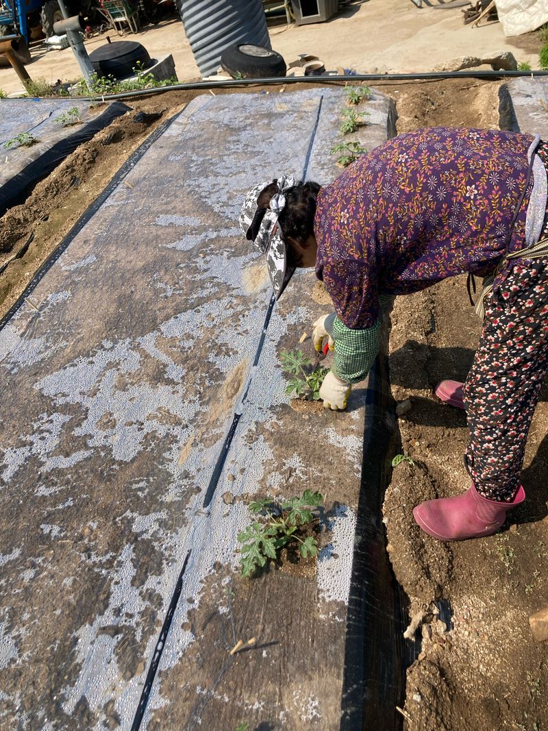 수박 유인그물 설치(2/2) 수박 식재 예정지 비닐피복(2/2)