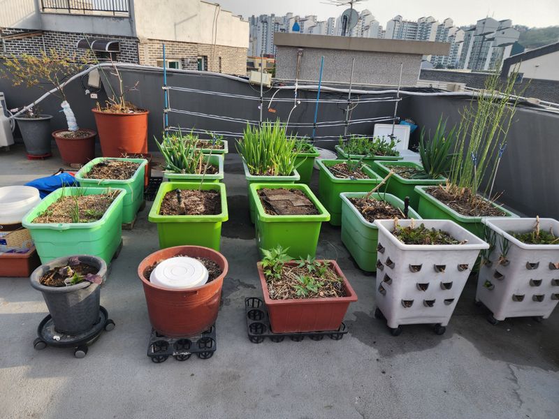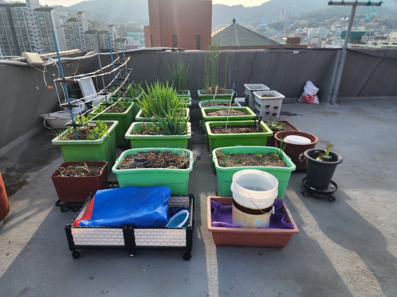 완두콩파종 옥상텃밭 4화분 1개 화분당 3개씩6군데 파종