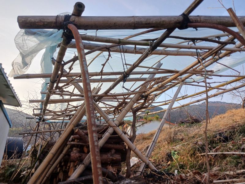 1. 포도나무밭 비닐 재포장 2. 포도나무 전정 마무리 3. 보숭아나무 전정 대략 50주