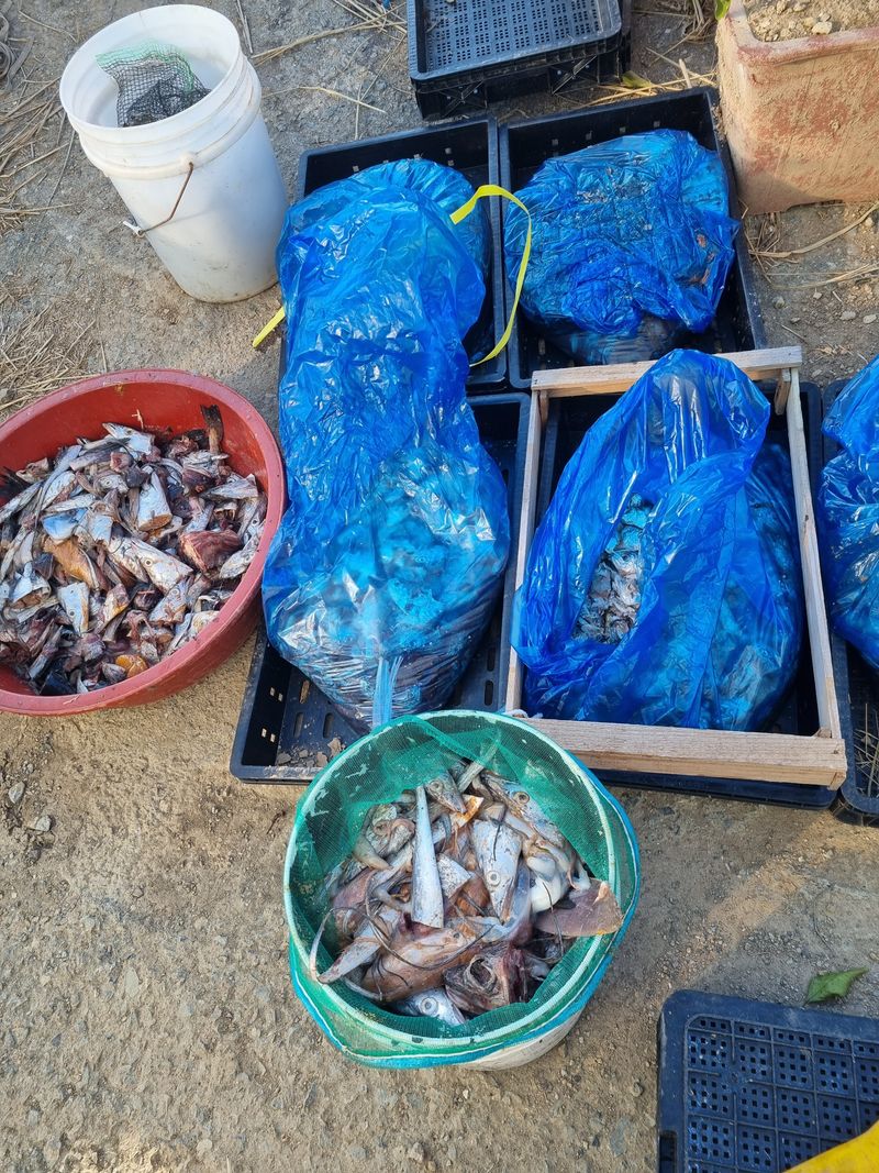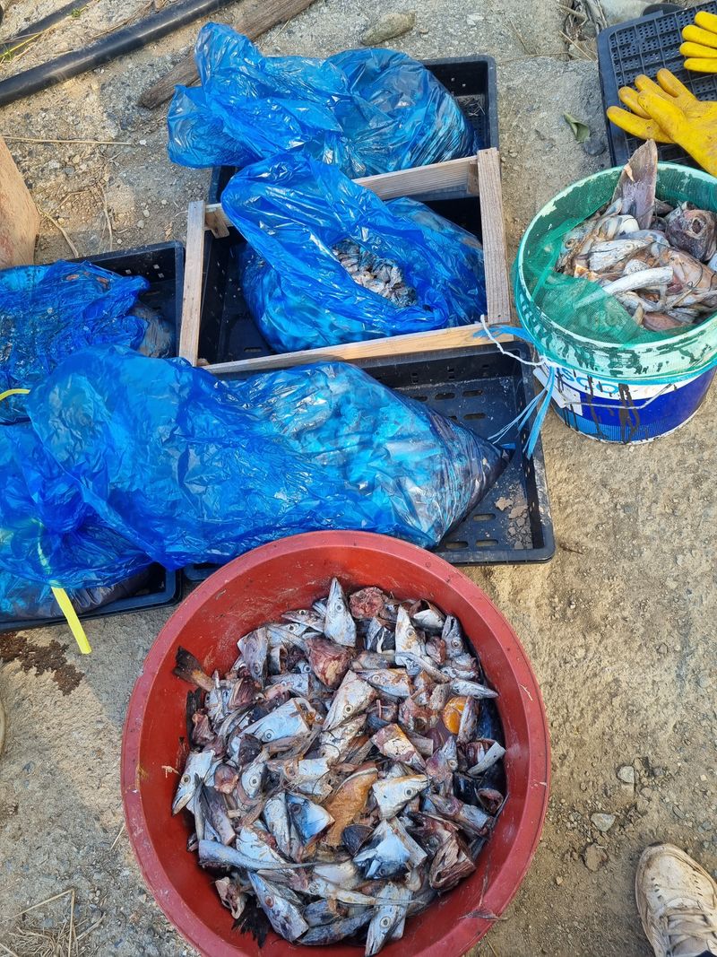농한기 생선 액비 만들기 생선 끓인다 식혀서 물.당밀.미생물 고초균.광합성균.효모균 유산균을 사용한다