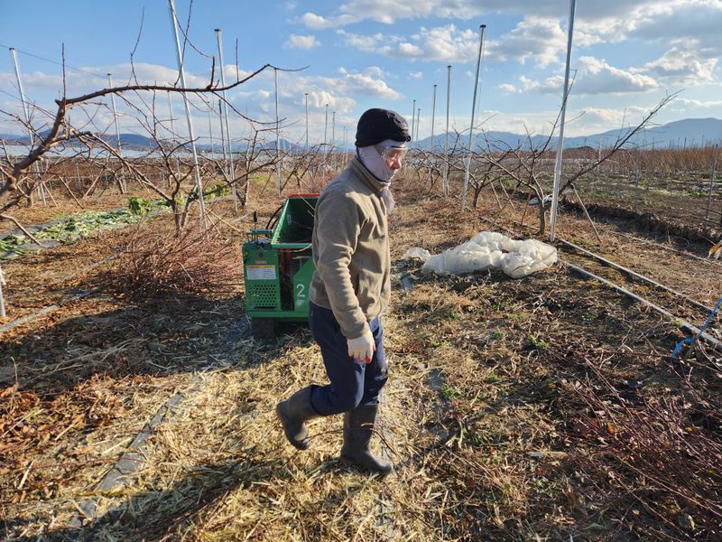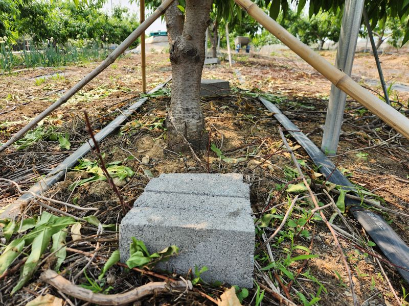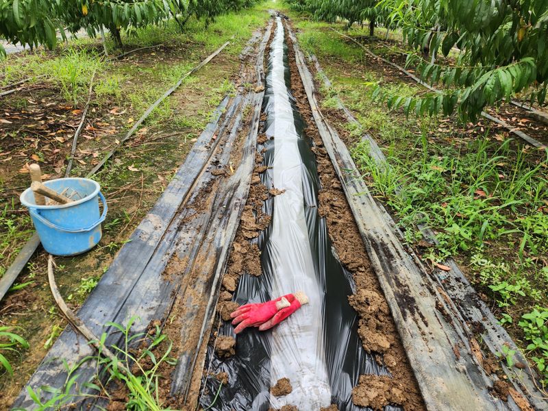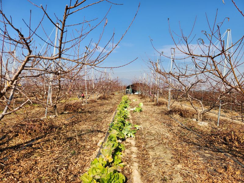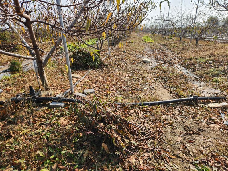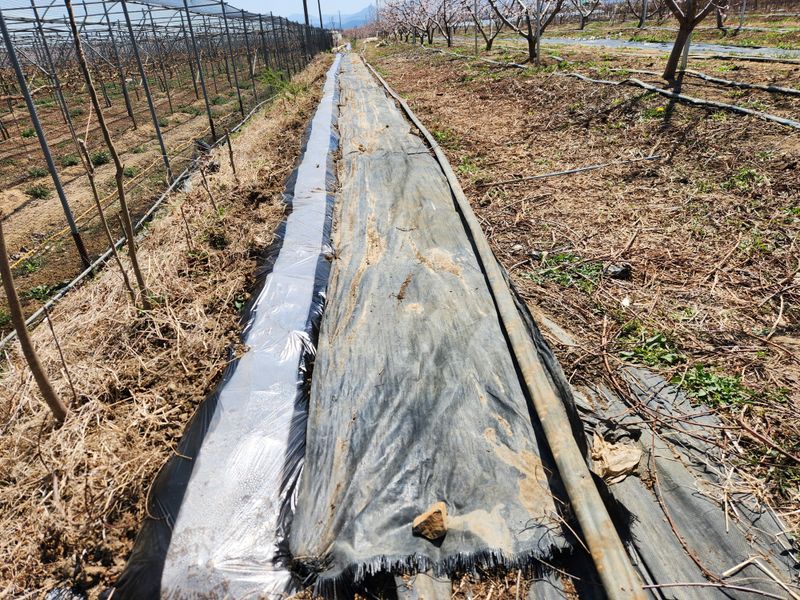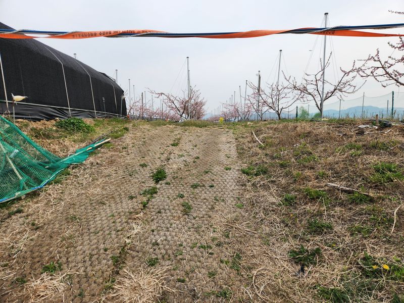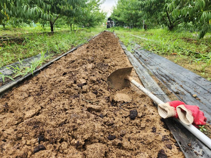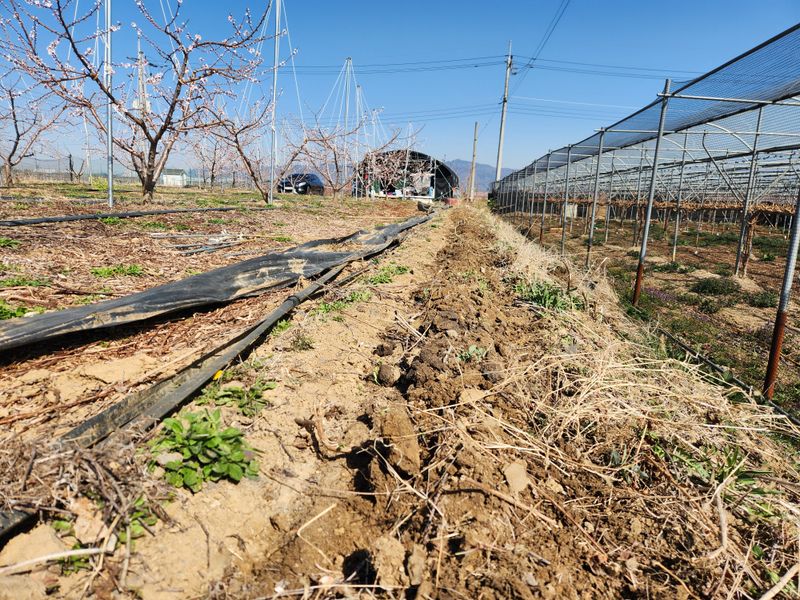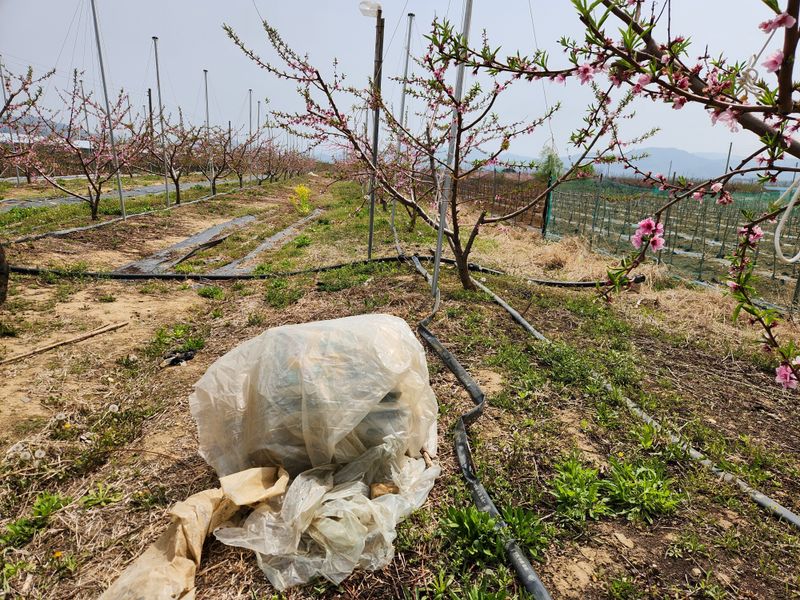 복숭밭에 나무당 우분 한소쿠리반씩 살포함