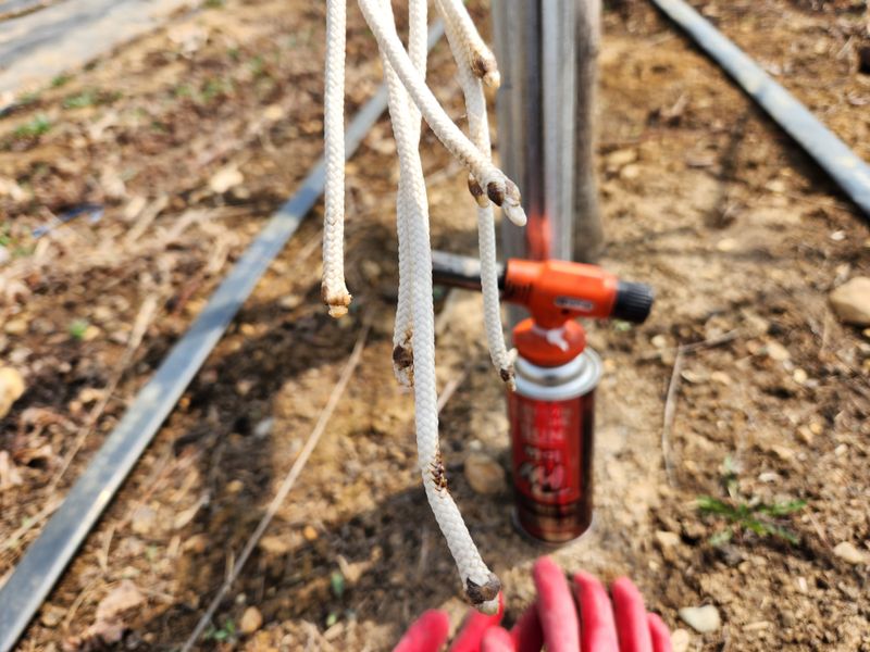오늘은 혼자 밭으로 가 우산형 지줏대 낙하산 줄, 풀어진 끝부분을 도치램프로 녹여서 뾰족하게 만들었다. 타는 냄새를 오랫동안 맡았더니 머리도 아프고 회복되지 않은 허리 통증이 심해 지줏대에 기댔다가 앉았다를 반복하며 일을 하려니 진도가 나가지 않는다. 한고랑 반을 ...