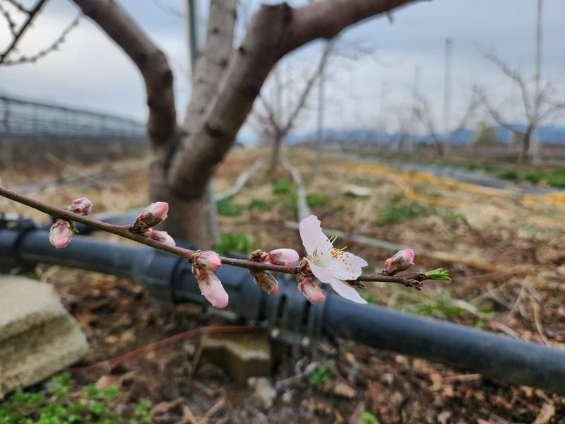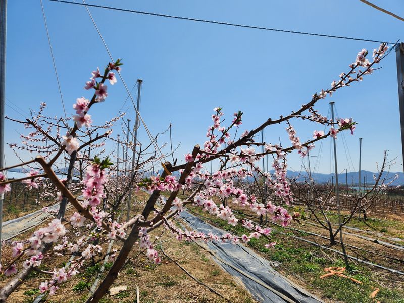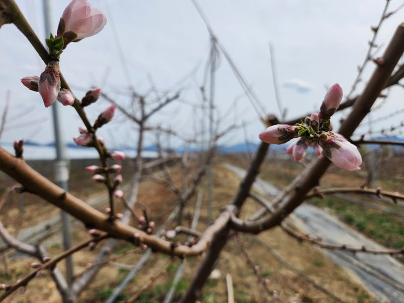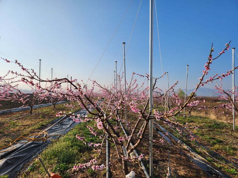 오늘은 복숭아밭에 세번째 약을 치기위해 새벽에 나와보니 아직은 공기가 차다. 우의를 입으니 나야 한결 따뜻했지만 뿜어지는 차가운 약을 맞고 흩날리는 꽃잎들에게 조금 미안한 생각이든다. 약을 다 치고 하우스에 앉아 바깥을 보고 있으니 말 그대로 무릉도원이다. 이때는...