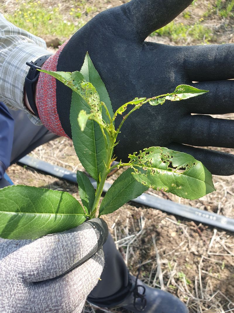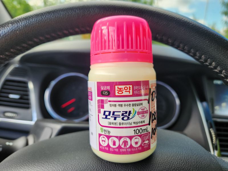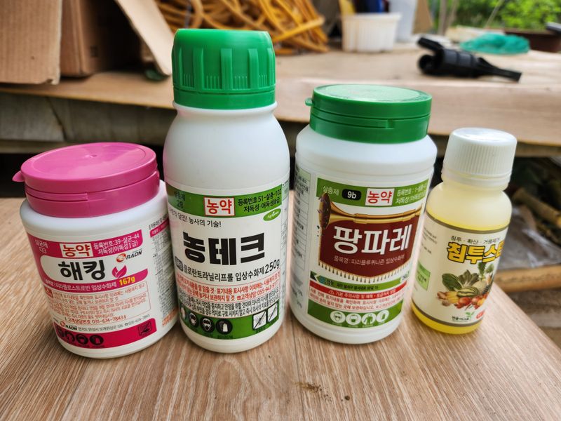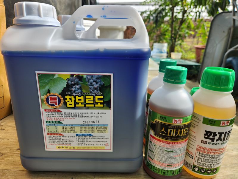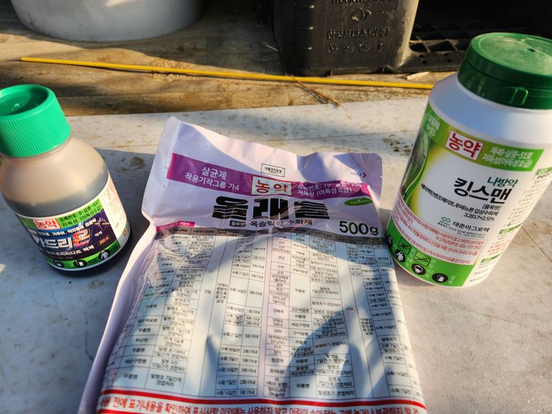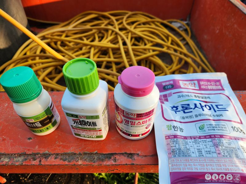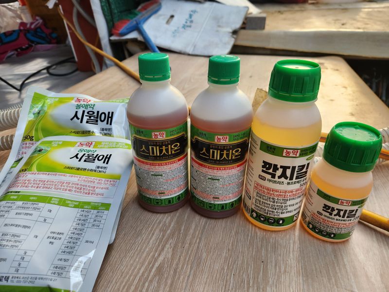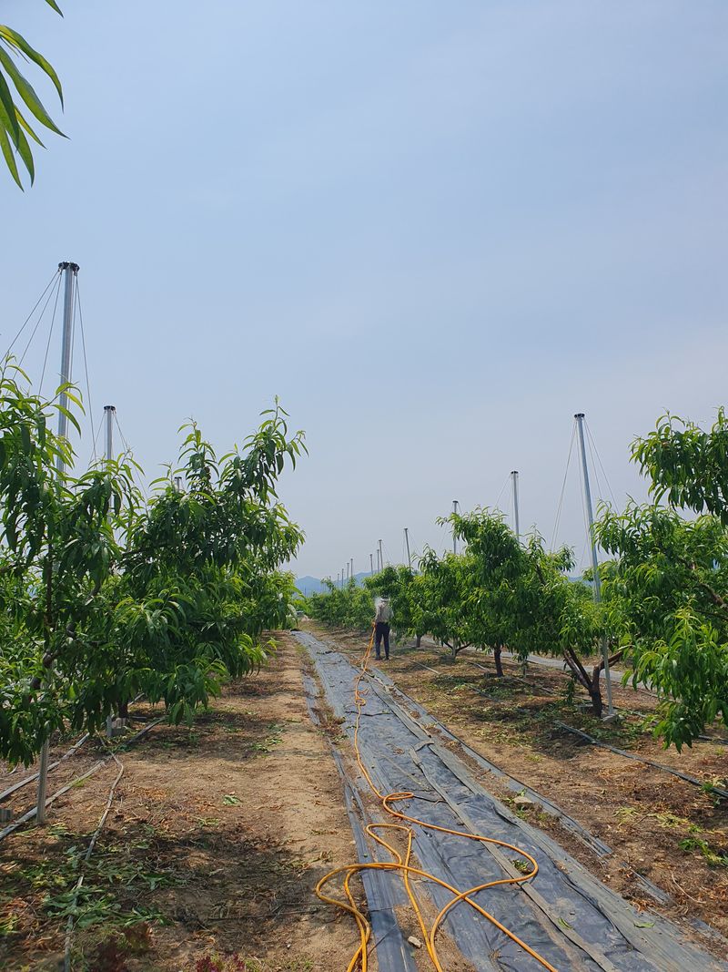 오늘은 04:30에 일어나 복숭밭으로 가 며칠전 구매해 둔 참보르드와 깍지킬, 노린재와 진딧물 퇴치제인 비술서를 섞어 올해 들어 두번째 약을 치기 위해 밭으로 향했다. 집을 나설 때부터 바람이 조금 센 것 같아 쳐야되나 말아야 되나 하다가 마음 먹은대로 실행하기로...