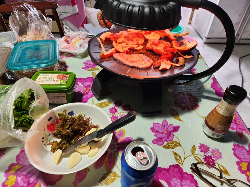 오늘 오전에는 밭으로 가 들깨를 찌고 배추 고랑에는 달팽이 약을 놓고 애기 고추를 수확했다. 열두 시에 밥 먹으러 온다는 딸내미와 시간을 맞추기 위해 서둘렀더니 몸은 조금 고되었으나 온갖 망상이 사라져 좋았다. 버섯을 듬뿍 넣고 익힌 쇠고기에 반주가 없어서 되겠나 ...