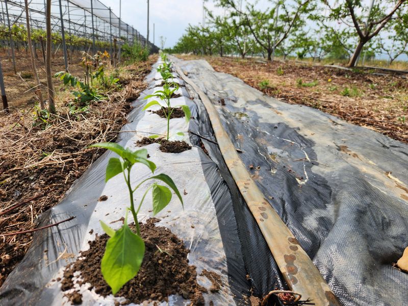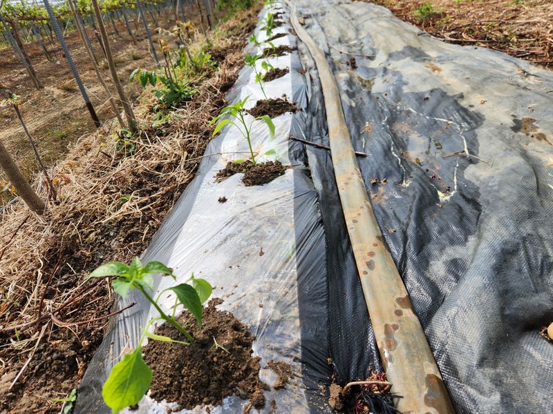 오늘은 어저께 하려다가 바람이 불어 밀어두었던 고추 심을 고랑을 만들고 토양살충제를 친 후 비닐을 덮었다. 복숭아나무 가지와 겹치지 않도록 하려니 관리기를 돌릴 수 없는 밭둑과 접한 곳에 옛날 방식대로 괭이로 쪼아서 100포기 정도 심을 두둑을 만들려니 힘은 두세배는...