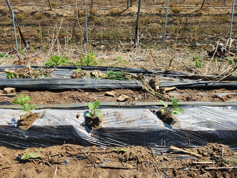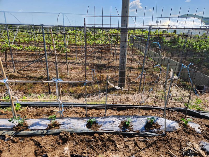 오늘은 오이 4, 방울토마토 3, 수박 2, 가지 2,바질 10포기를 심고 오이가 넝쿨을 잘 올릴 수 있도록 망을 세웠다. 이 정도면 충분히 먹고도 남지 싶다. 그런데 어제 옆지기가 손에 물집 잡혀가며 만들고 비닐까지 씌워 둔 여분의 고랑은 어떻게 처리 할지 궁금...