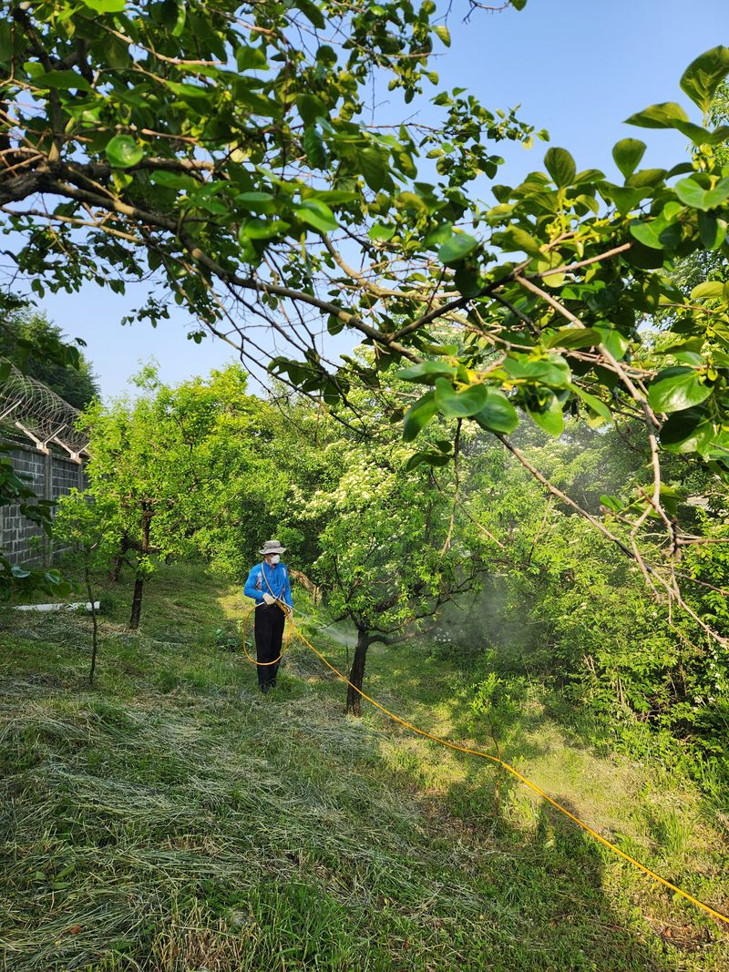 오늘은 착과수 조사를 위해 아홉 시에 온다는 보험사 사정인과의 일정을 맞추기 위해 대추밭에 약을 먼저 치기로 했다. 오랜만에 밭에 도착하니 그새 풀들은 종아리까지 자라 있고 대추도 새끼손톱만큼 커졌다. 대봉과 단감나무까지 빠르게 약을 치고 복숭아밭에서 아침을 먹고 ...