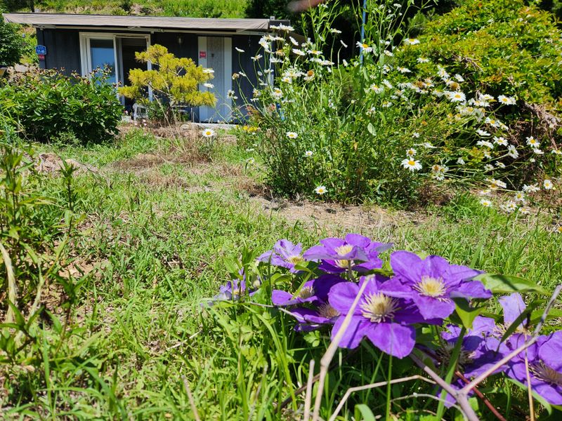 오늘은 느지막이 일어나 시골동네 경로당에 뭐가 필요한지 여쭌 결과 커피가 떨어졌다기에 한박스 사서 갖다드렸더니 "올 때마다 뭘 자꾸 사오냐? 밭에 갔다가 점심하니까 꼭 자시고 가라."시며 당부 하신다. 어저께 오려다 덜 폈지 싶어 안 왔더니 이틀 날씨가 더웠다고 엄나...