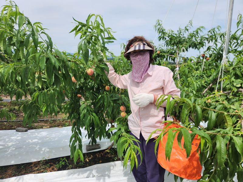 오늘도 새벽부터 수확하고 있는데 “복숭아 향기가 솔솔 나네.” 하면서 집사람과 동네 모임을 하는 아주머니가 수확을 돕겠다며 찾아왔다. 복숭아 몇 개를 따더니 “우리 것하고는 다르게 왜 이렇게 단내가 나노?”하며 한 입 깨물고는 “와 진짜 맛있네.”라며 “형부 진짜 농...