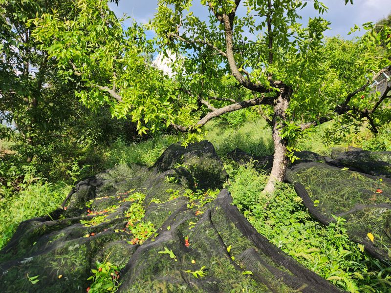 오늘은 밭으로 나가 가뭄에 목말라하는 복숭아 나무에 관수를 해놓고 햇순 가지치기를 했다. 수확하느라 며칠 방치했더니 빽빽한 밀림을 방불케 한다. 간신히 비집고 속으로 들어가 속칭 도장지 잘라내기를 반복하다 보니 금세 온몸이 다 젖는다. 그런데 일부러 남겨둔 까치밥...
