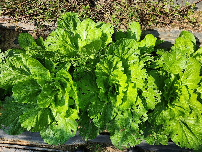 올해 8월 26일에는 배추 모종을 막걸리에 충분히 담가 심은 뒤, 3일 뒤 막걸리와 사과식초를 섞어 분무하고 달팽이를 수시로 잡아가며 관리했지만 잦은 비로 일조량이 부족했는지 알도 안 차고 몇 포기에 응애가 생겨 부득이하게 배추를 사서 김장을 했다. 그런데 겉을 벗...