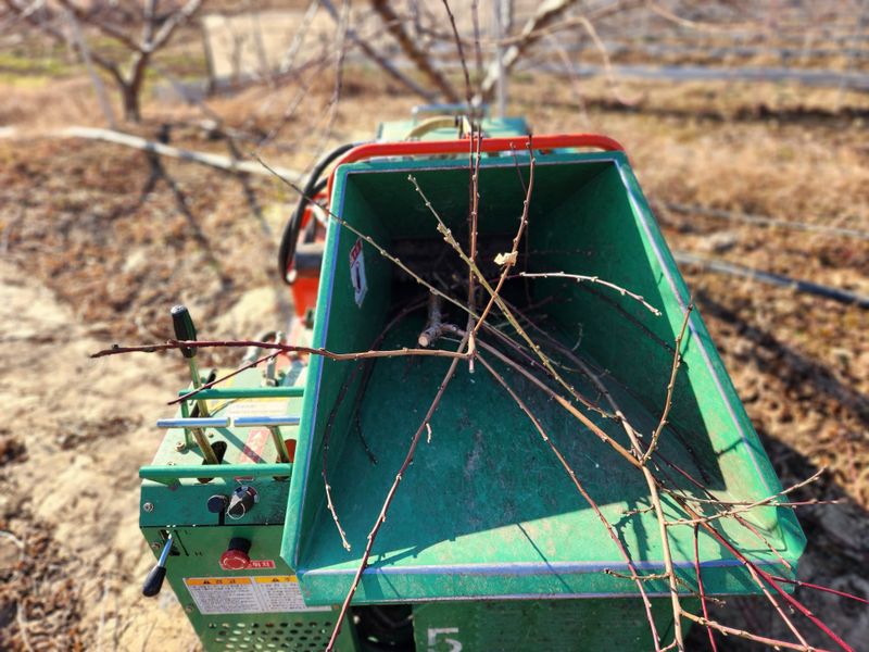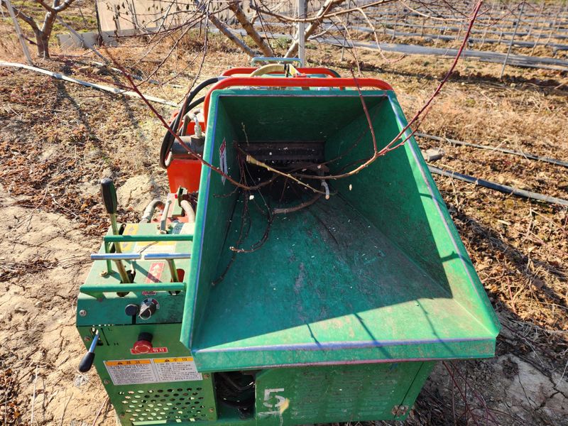 친구 도움 받아 전정 가지 파쇄 작업 함