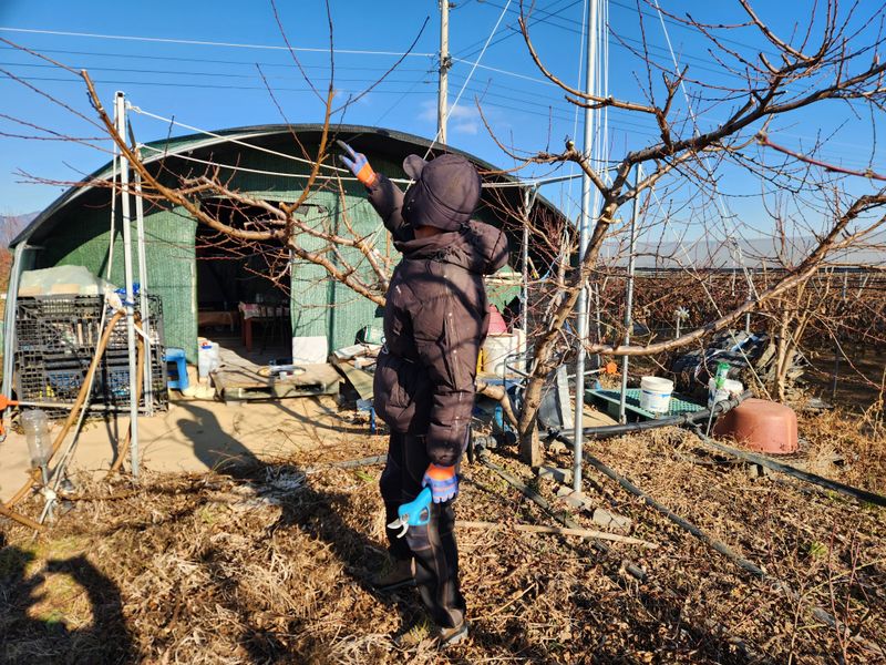 오늘은 대극천 복숭아나무 3일차 전정을 했는데, 수세가 좋아 목표치의 절반밖에 하지 못했다. 한 나무를 손질한 후 옆 나무로 옮겨 가면 덜 자른 부분이 눈에 띄어 다시 되돌아오곤 하다 보니 속도가 붙지 않는다. 거기다가 허리가 아파 앉았다 일어서기를 반복하니 일은 더...